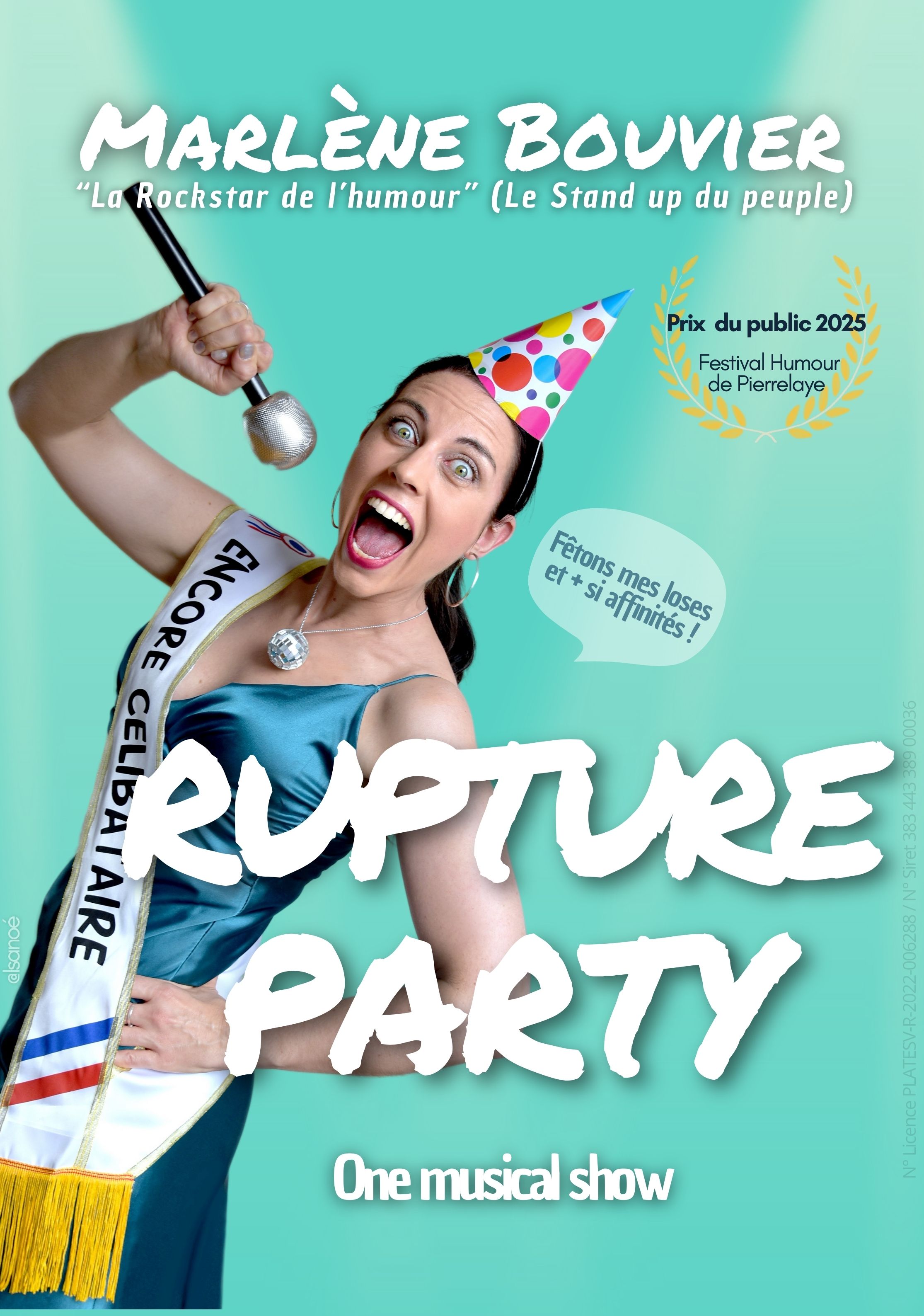 Ex-instit, ex-dépressive, experte en loses amoureuses, Marlène Bouvier vous invite à fêter sa dernière rupture en musique.